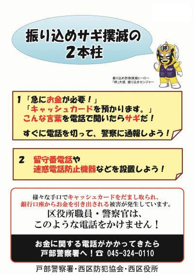 お金に関する電話がかかってきたら、戸部警察署へ通報してください!