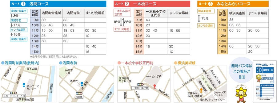 浅間コース・一本松コース・みなとみらいコースの3コースで運行しますので、ぜひご利用ください。