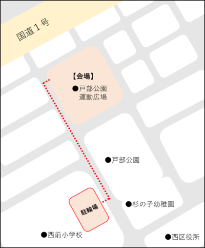 自転車でお越しの方は、西前小学校ピロティをご利用ください。