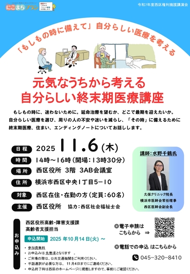 【申込受付終了しました】令和7年度 西区権利擁護講演会 元気なうちから考える自分らしい終末期医療講座