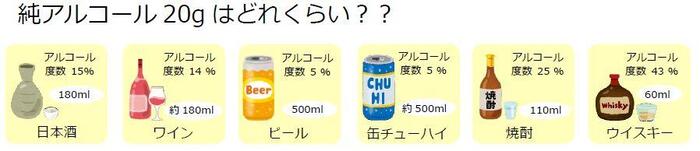 あなたのお酒の量は、「純アルコール量」で何グラムですか?
