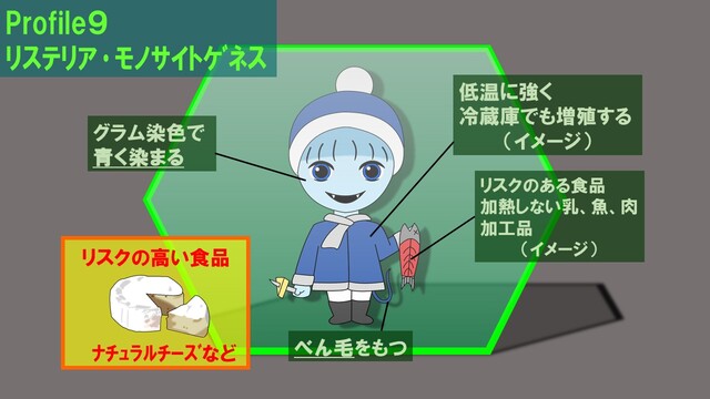 乳製品、食肉加工品、魚介類加工品、野菜加工品などの加熱しないで食べる食品