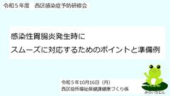 【講義】感染性胃腸炎発生時にスムーズに対応するためのポイントと準備例(パワーポイント:4,699KB)(所要時間の目安 約20分)