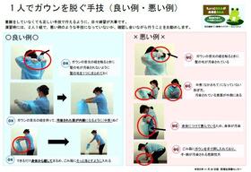 ガウンを脱ぐ(介護者付き)手技(良い例・悪い例)
