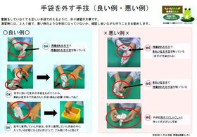 手袋を外すときには、汚染された部分を触らない様に注意しましょう