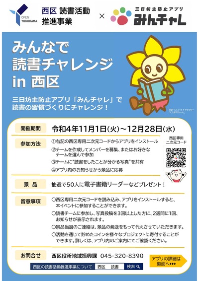 【終了しました】令和4年度「みんなで読書チャレンジ in 西区」を実施します!