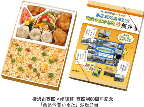 西区の「今」と「昔」を楽しく学べる「西区今昔かるた」と、株式会社崎陽軒の「炒飯弁当」がコラボレーション!