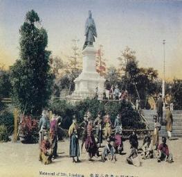 銅像広場の様子「絵葉書で見る風景100年前の横浜・神奈川」(横浜市中央図書館所蔵)