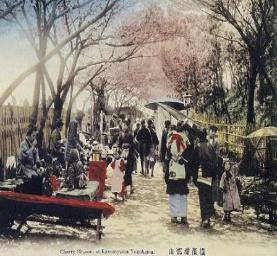 掃部山での花見「絵葉書で見る風景100年前の横浜・神奈川」(横浜市中央図書館所蔵)