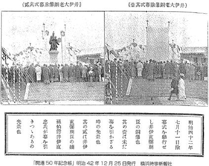 除幕式の様子「開港50周年記念帳」(横浜市開港資料館所蔵)