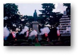 1958年、横浜開港100年祭の年、滋賀県彦根市長ら関係者1,000人の方が、「掃部山(かもんやま)公園」において井伊直弼を偲ぶ記念式典を開催しました。その後も彦根市と西区との交流はつづき、「西区虫の音を聞く会」に彦根市長・彦根鉄砲隊が来浜、鉄砲隊の演武も行われました。