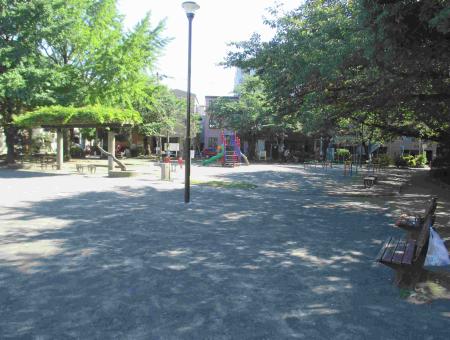 国道1号線より道を1本奥に入った所にあり、サクラの大きな樹木に囲まれた比較的静かな公園です。公園の半分が遊具のある広場となっていて、もう半分は遊具がなく、運動のできる広場となっています。