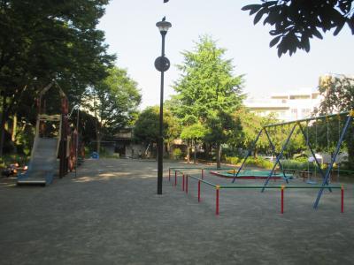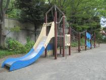 上段には大型複合遊具や幼児用遊具があります。見事な藤棚が茂り心地よい日陰を提供してくれます。