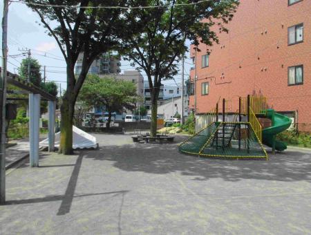 浅間下交差点に面し、交番に隣接している人通りの多い場所にある公園です。商店街の入り口に位置する公園なので、買い物帰りに一休みする人の姿もよく見かけます。