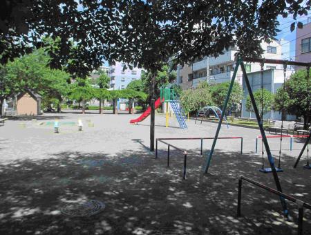 市営バスの浅間町車庫及び西スポーツセンターの北側にある公園。環状1号線に面し、わかりやすいところにあります。公園の目の前に歩道橋があるため、道の反対側からも直接公園に行くことができ、便利です。公園には滑り台、ブランコなど複数の遊具が設置され、見通しの良い公園となっています。