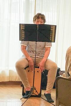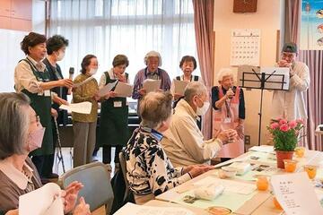 今回は、「母の日」にちなんだ歌をみんなで歌いましょう♪という企画で、地域の方がプロ顔負けの腕前でハーモニカとパーカッションを演奏するのに合わせ、参加の皆さんが気持ちよく歌っていらっしゃいました。歌いながら懐かしい記憶が込み上げて涙を浮かべる方もいらっしゃいました。
