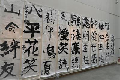 また、今年度は西区制80周年を記念して、「ぶっつけ本番書展」と題し、その場で「一発書き」した書をそのまま展示して頂く特別企画が実施されました。