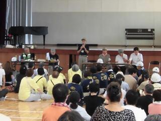 その他にも、炊き出しや体育館の区割りなど様々な訓練が行われていましたが、岡野中には外国人の方も見学に来ていて、なじみのない日本の避難所のことを知っていただく良い機会となりました。また、東小には視覚障害者の方が参加され、避難所で生活するうえでの支援の方法などについてのアドバイスをいただきました。