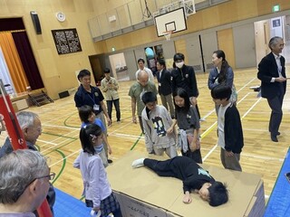 訓練には、学校職員の皆様、地域住民の皆様に加えて、みなとみらい本町小学校4年3組の児童も参加してくれました。地域の皆様やこどもたちと実際に発電機などの防災資機材を触った使い方の確認や、体育館にて避難者受け入れを想定した区割りの作成などを行い、最後には参加者の皆様と意見交換を行いました。