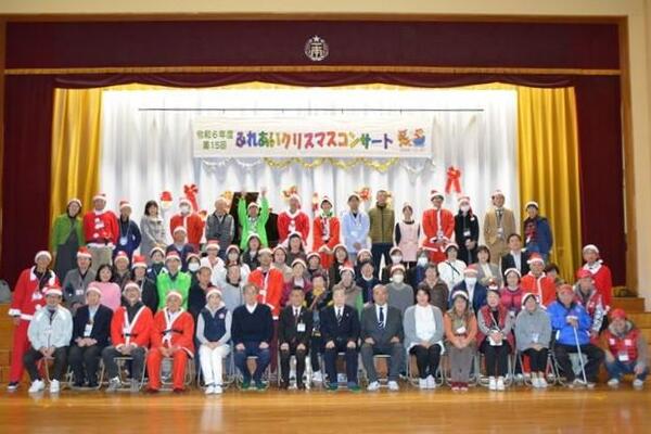 12月7日(土曜日)に一本松小学校の体育館で、第4地区の冬の一大イベント「ふれあいクリスマスコンサート」が開催されました。このイベントは、“一人暮らしの高齢者など、普段コンサートに行く機会がない方に、地域の中で本格的な音楽を楽しんでほしい!”と、第4地区社会福祉協議会と自治会連合会の皆様が協力して続けてきたもので、今年で15回目の開催となります。高齢者をはじめお子様の参加もあり、100名以上が会場に詰めかけました。誰もが参加できるように、車いすの方の階段昇降を防犯部や消防団のメンバーが手伝っていらっしゃいました。