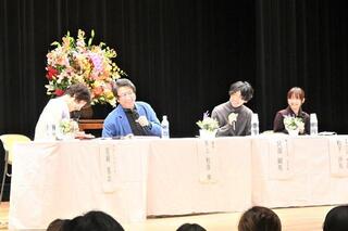 また、井上さんによる「吾輩は猫である」一部抜粋場面の朗読を通じて、会場全体で「耳で聴く本」を実際に楽しんでいただいたほか、後半は神奈川大学の学生も交えて、「目で読む本、耳で聴く本」それぞれの面白さや楽しみ方について語っていただきました。