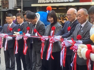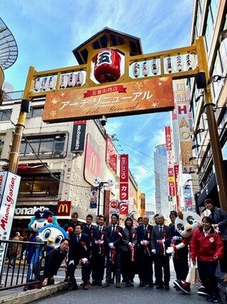 セレモニーには、来賓及びリニューアル協力事業者の皆様のほか、横浜市内プロスポーツチームのマスコットキャラクター達が参加し、アーチの下でテープカットも行われました。4代目となるアーチは、大きく【五】と書かれた提灯のもと横浜駅西口の商店会や会員店舗、西区商店街組合連合会、自治会町内会、市内プロスポーツチームの提灯を掲げるとともに、大型のデジタルサイネージを備えており、和の雰囲気でより一層の賑わいを創出するものとなりました。