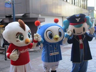 市内プロスポーツチームのマスコットキャラクター達もお祝いに