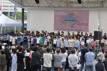 ライブステージでは、みなとみらい本町小学校の児童による校歌と横浜市歌の合唱が披露され、元気な歌声がミュージックテラスに響き渡ります。また、神奈川大学チアリーディング部による迫力あるパフォーマンスは、チームワークと笑顔で観客を魅了しました。