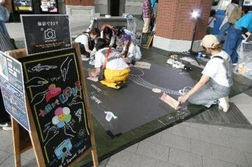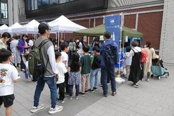 にぎわいエリアでは、SDGsを知ってもらう企画として、チョークで自由に絵が描ける黒板のような壁紙、「Blackboard」の廃材を再利用したアートプロジェクトが行われ、多くの親子が参加し、会場はにぎわいに包まれていました。完成したチョークアートは、6月15日(日曜日)までK-Arena Shop内に展示されていますので、ぜひご覧ください。