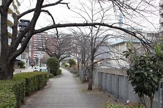 石崎川プロムナードも、まだまだつぼみの桜でした。開花まではもう少しかかりそうですね。