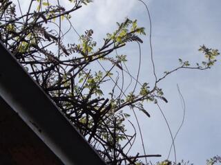 藤のつぼみが長く伸びて、開いてきています。満開の藤の花が楽しみですね!