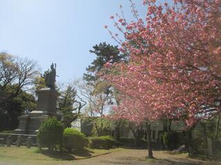 満開になると、井伊掃部頭直弼公を囲むように、桜が彩ります。