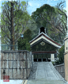 このお寺、法華宗学陽山勧行寺(かんぎょうじ)。越後本成寺末で三ツ沢豊顕寺三世日養をもって開山とする。ご本尊は大曼茶羅、一塔両尊だが境内にも面白いものがある。まず天然理心流の流祖近藤内蔵之助長裕(こんどうくらのすけながひろ)の墓。新撰組局長近藤勇は四代目にあたる。もう一つは水車舟制作の道周翁の墓。水車舟とは外輪船のことだろう。その功績をたたえた水戸藩主の和歌一首が彫られている。他に作家の北林透馬夫妻もこの墓地で眠る。