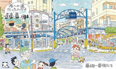 その道は今、商店街になっている。久保町の「サンモール西横浜商店会」に続いて「藤棚商店街」に入る。酒屋、鮮魚店、八百屋、肉屋、雑貨店、総菜店など生活必需品の商店が並ぶ。昭和のなつかしい雰囲気が今も漂う商店街だ。