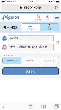 ルート検索画面(スマートフォン)