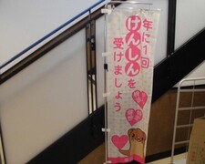 栄区では疾病の早期発見・予防のため、横浜市特定健診・横浜市がん検診・横浜市健康診査受診勧奨を「けんしんのぼり旗」にて啓発しています。