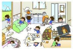 ①イラストを見ながら、「どこが危ないか」「このあとどうなるか」を考えましょう。(1人でも、何人かで考えて話し合うもOK)