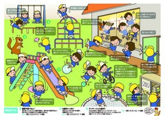 保育園や幼稚園で遊ぶとき、どこが危ないかな?皆で確認してみよう。