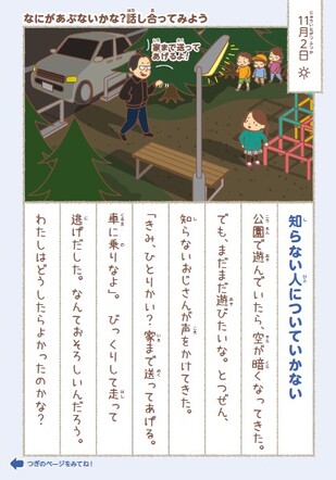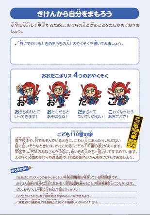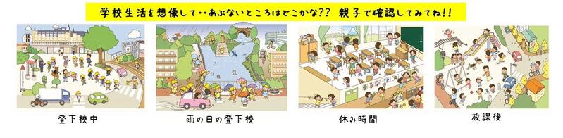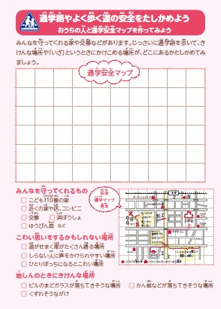 ↑登下校や、放課後の危険な場所はどこかな?と親子で考えながら探せる教材です。