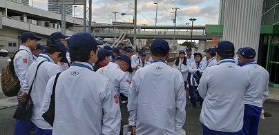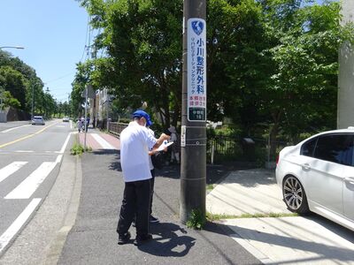 横浜マラソンの活動場所付近で、活動内容を確認中の栄区スポーツ推進委員