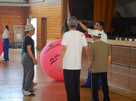 はじめに、スポーツ推進委員が前に進み、参加者全員でラジオ体操を行いました。