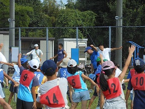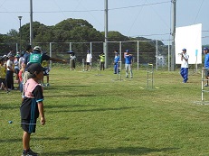 次に、参加した子ども達は、チームに分かれて、スポーツ推進委員の指導のもと、ラダーゲッターを体験しました。