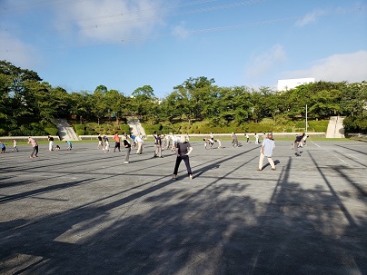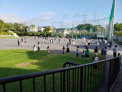 毎年恒例のラジオ体操を夏休みの早朝に実施。子どもから、高齢者の方まで、多くの方が参加しました。