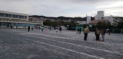 地域のすべての方々を対象に、グラウンドゴルフを実施。子ども達もたくさん参加しました。