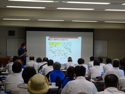 栄区スポーツ推進委員連絡協議会会長の説明により、スポーツ推進委員の概要や役割、活動内容について学びました。