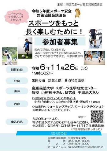 令和6年11月26日(火曜日)にスポーツ安全対策協議会講演会「スポーツをもっと長く楽しむために!」を開催しました。