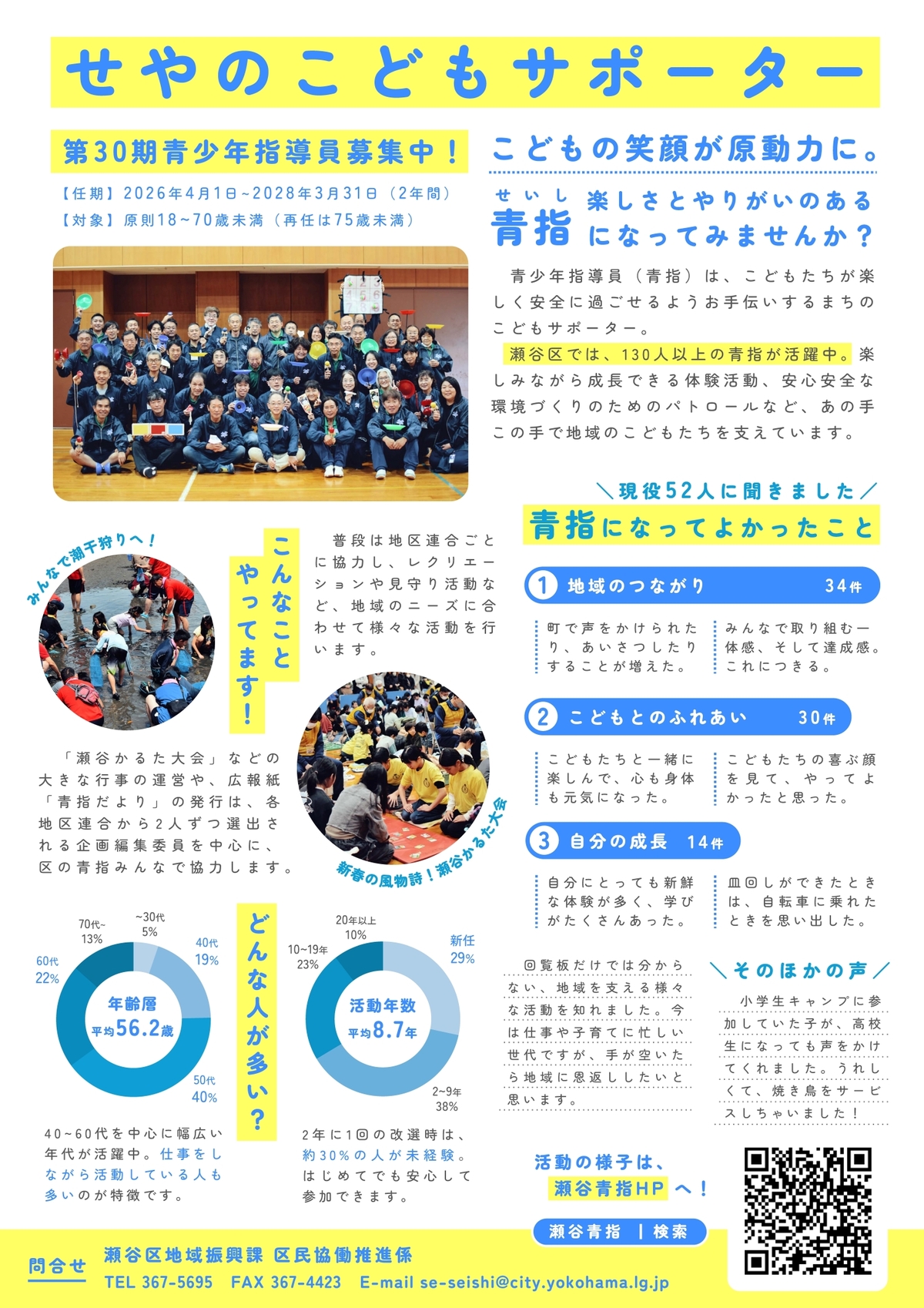 青少年指導員の活動をまとめた広報紙「瀬谷青指だより」を毎年3月に発行しています。