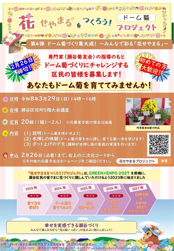 専門家(瀬谷菊友会)の指導のもと、ドーム菊づくりにチャレンジする区民の皆様を募集します!