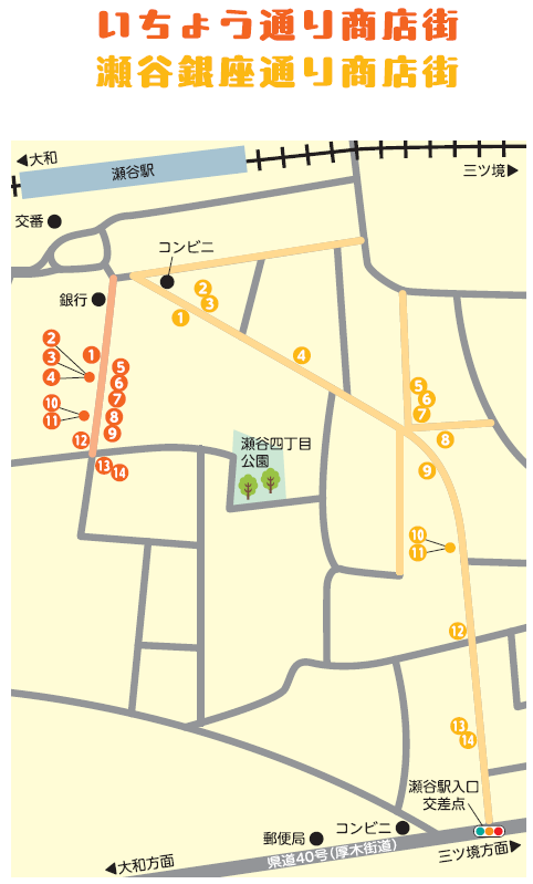 いちょう通り商店街(瀬谷駅南口) ※地図左側 オレンジ色