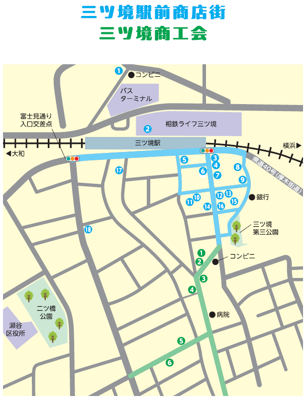 三ツ境商工会 (三ツ境駅南口) ※地図下側 緑色